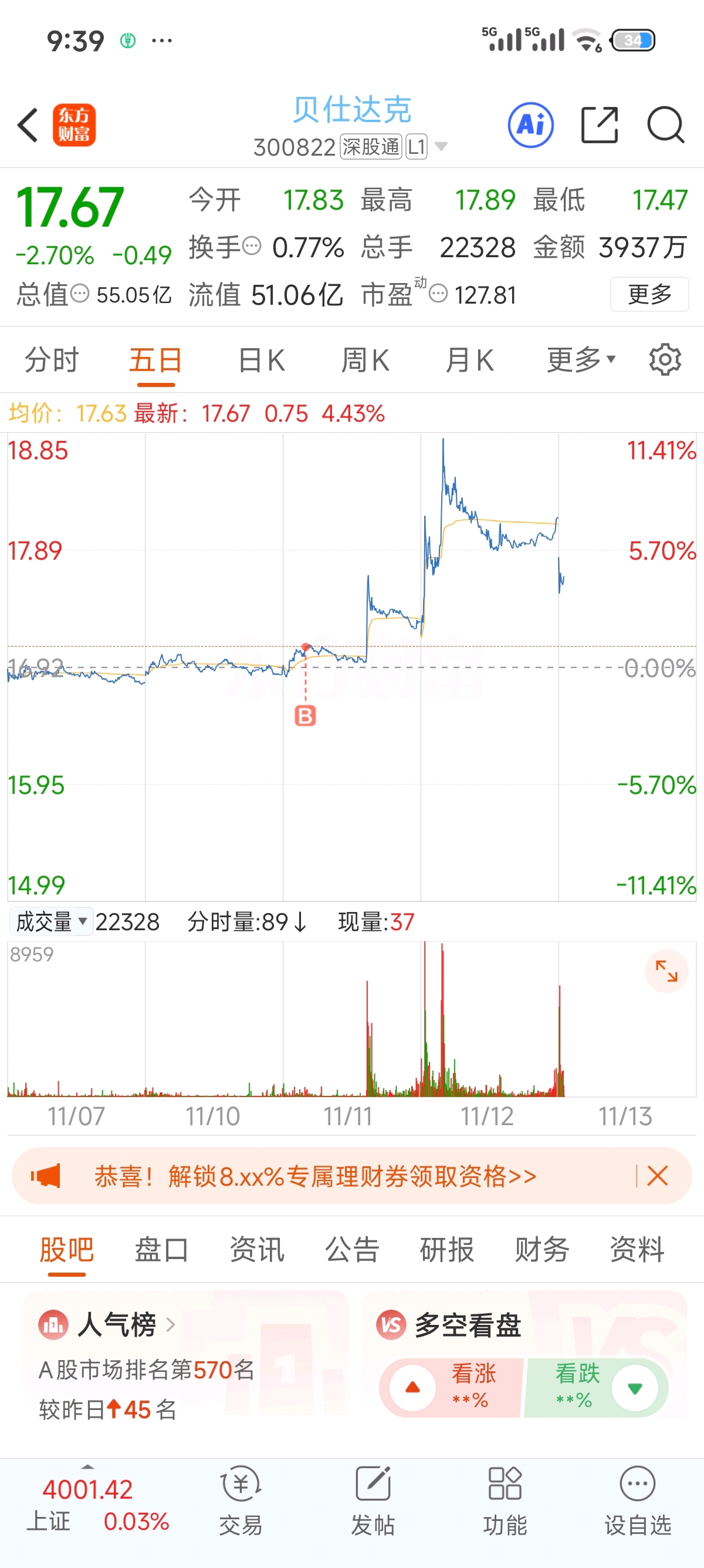 $贝仕达克(SZ300822)$ 前些天买入的,格局一段时间再看