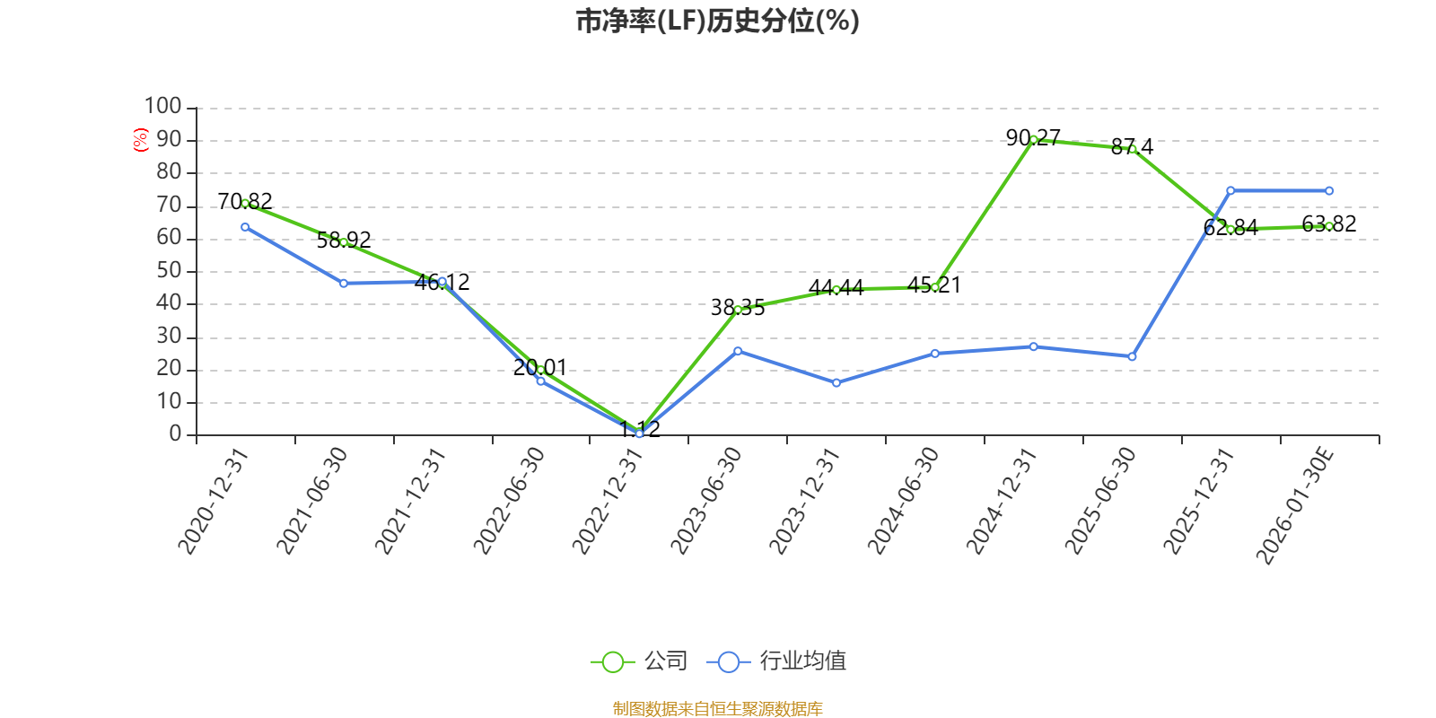 市盈率、市净率为负时,不显示当期分位数,会导致折线图中断。
