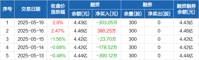 阿尔特:融资净偿还303.05万元,融资余额4.43亿元(05-19)