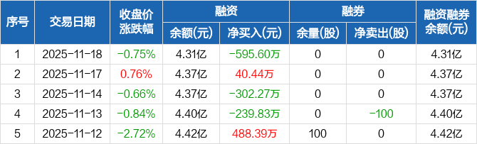 阿尔特:融资净偿还595.6万元,融资余额4.31亿元(11-18)