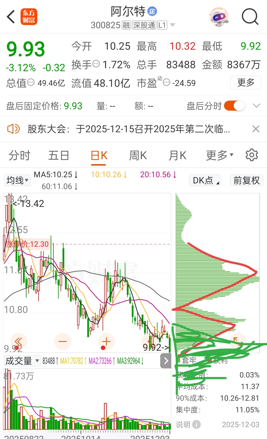 $阿尔特(SZ300825)$ 双乳峰还要继续下跌筹码峰下移才能有起色