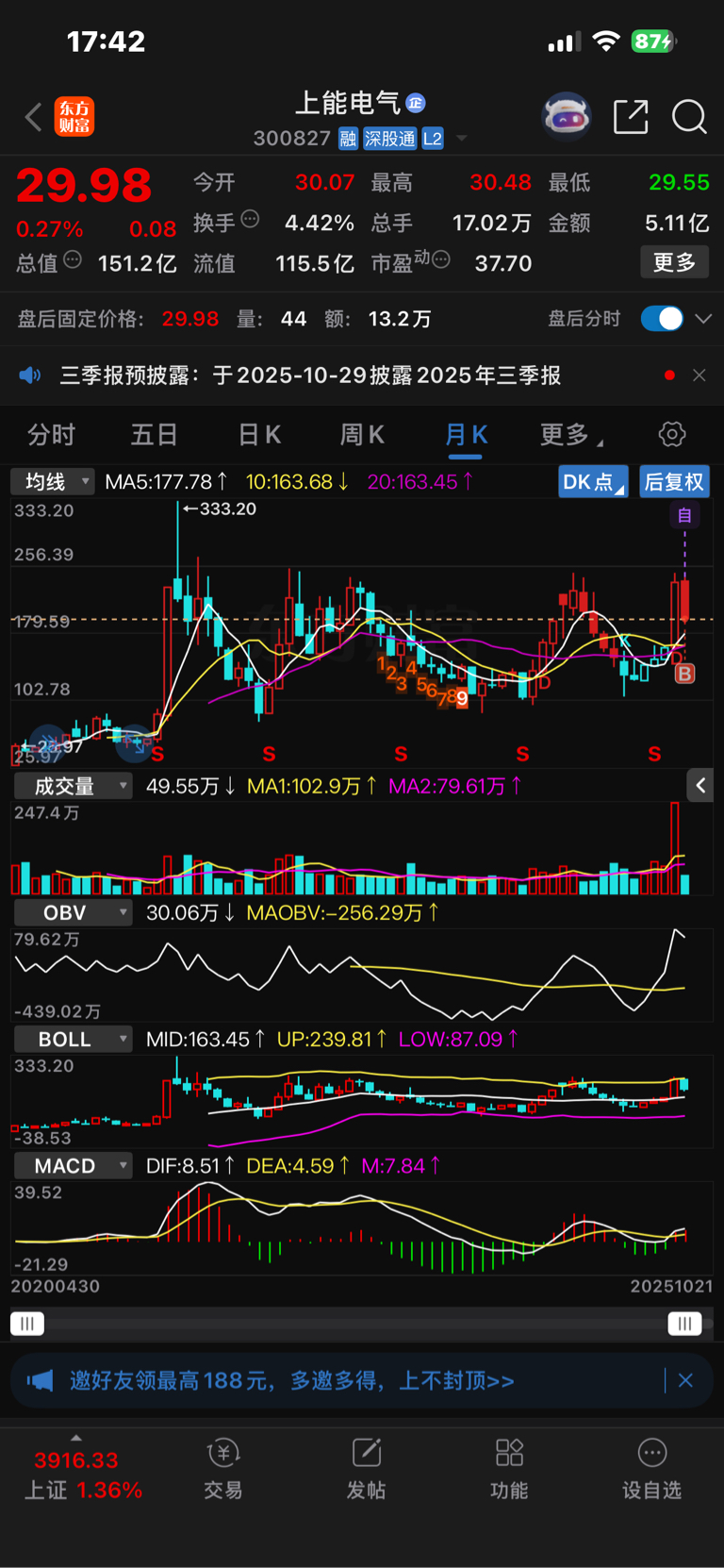 $上能电气(SZ300827)$ 已经是价格最高点了,要回调了