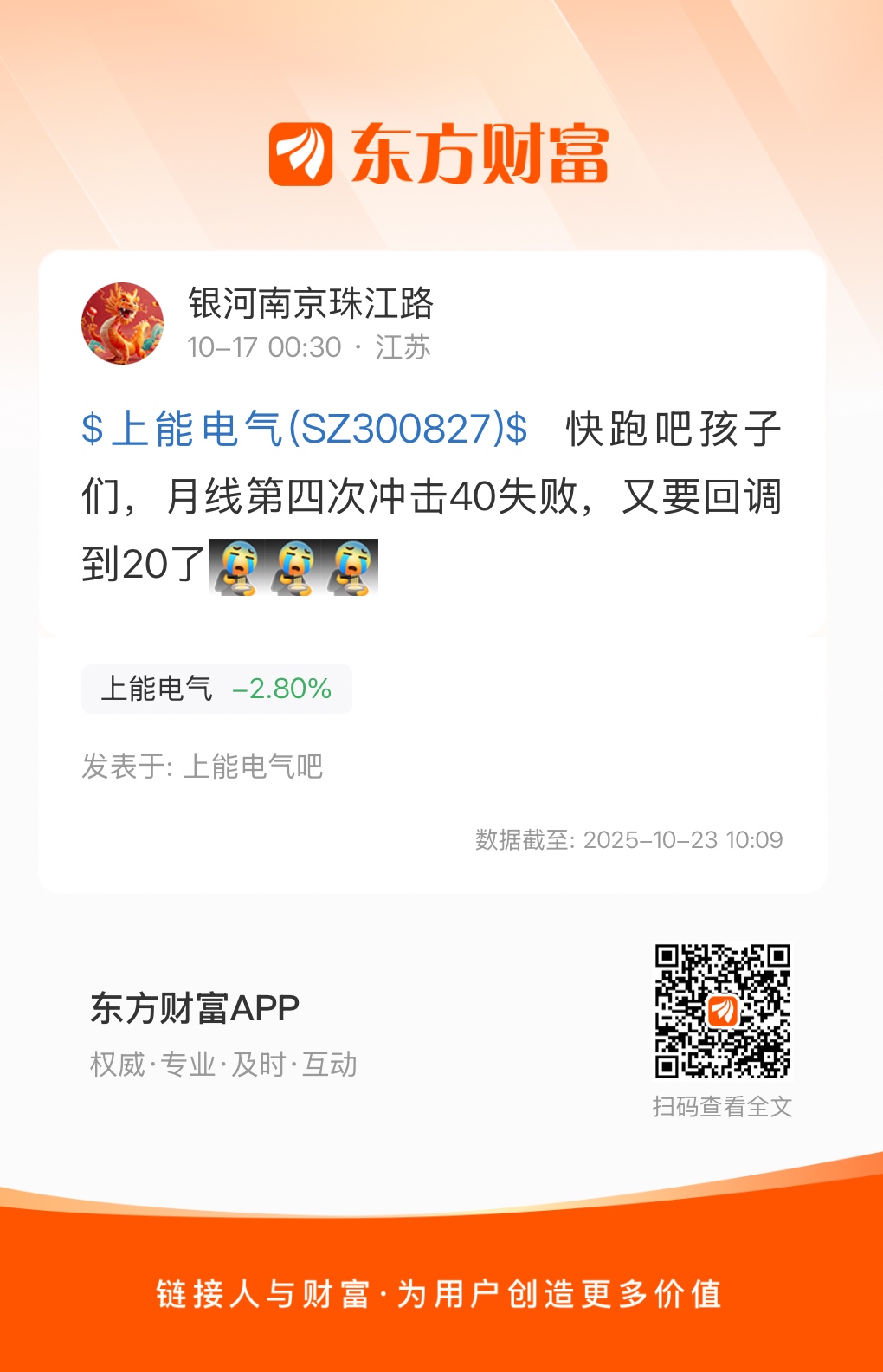 $上能电气(SZ300827)$  快跑吧孩子们,月线第四次冲击40失败,又要回调到20了