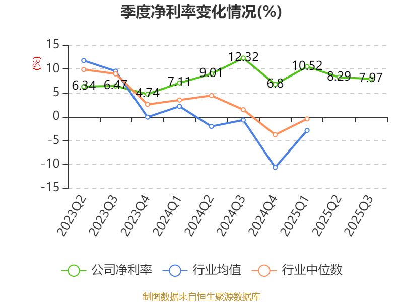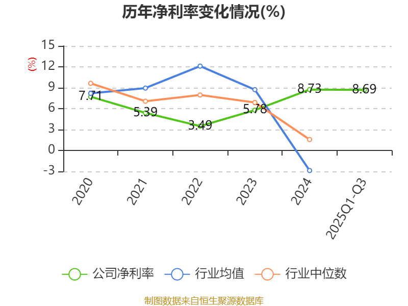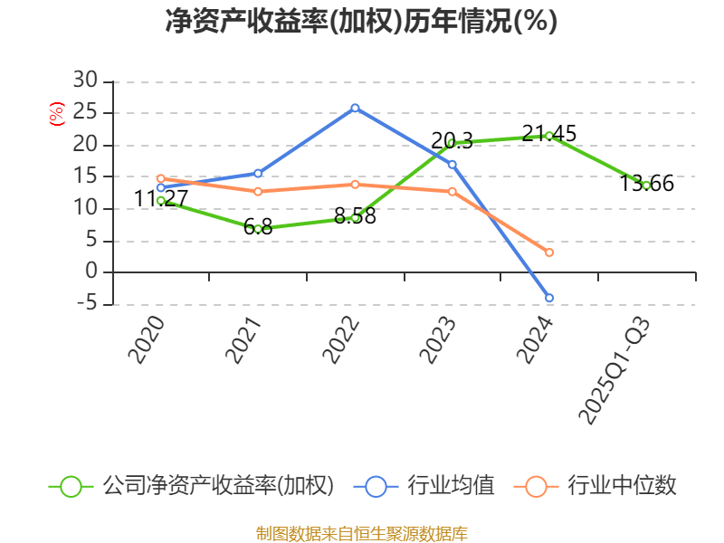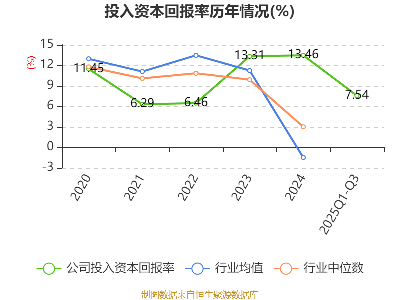 盈利能力方面, 2025年前三季度公司加权平均净资产收益率为13.66%,同比下降2.1个百分点。公司2025年前三季度投入资本回报率为7.54%,较上年同期下降2.4个百分点。