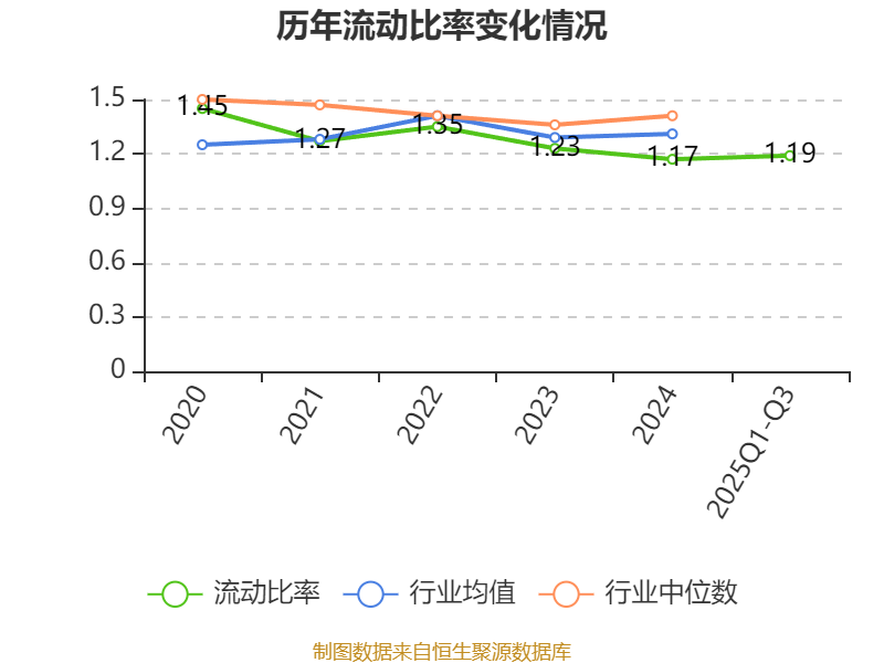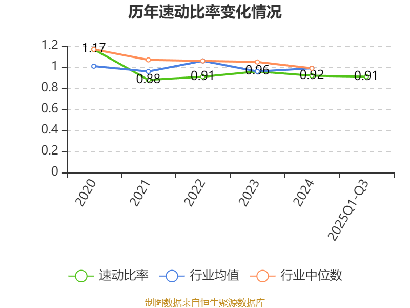 2025年前三季度,公司流动比率为1.19,速动比率为0.91。
