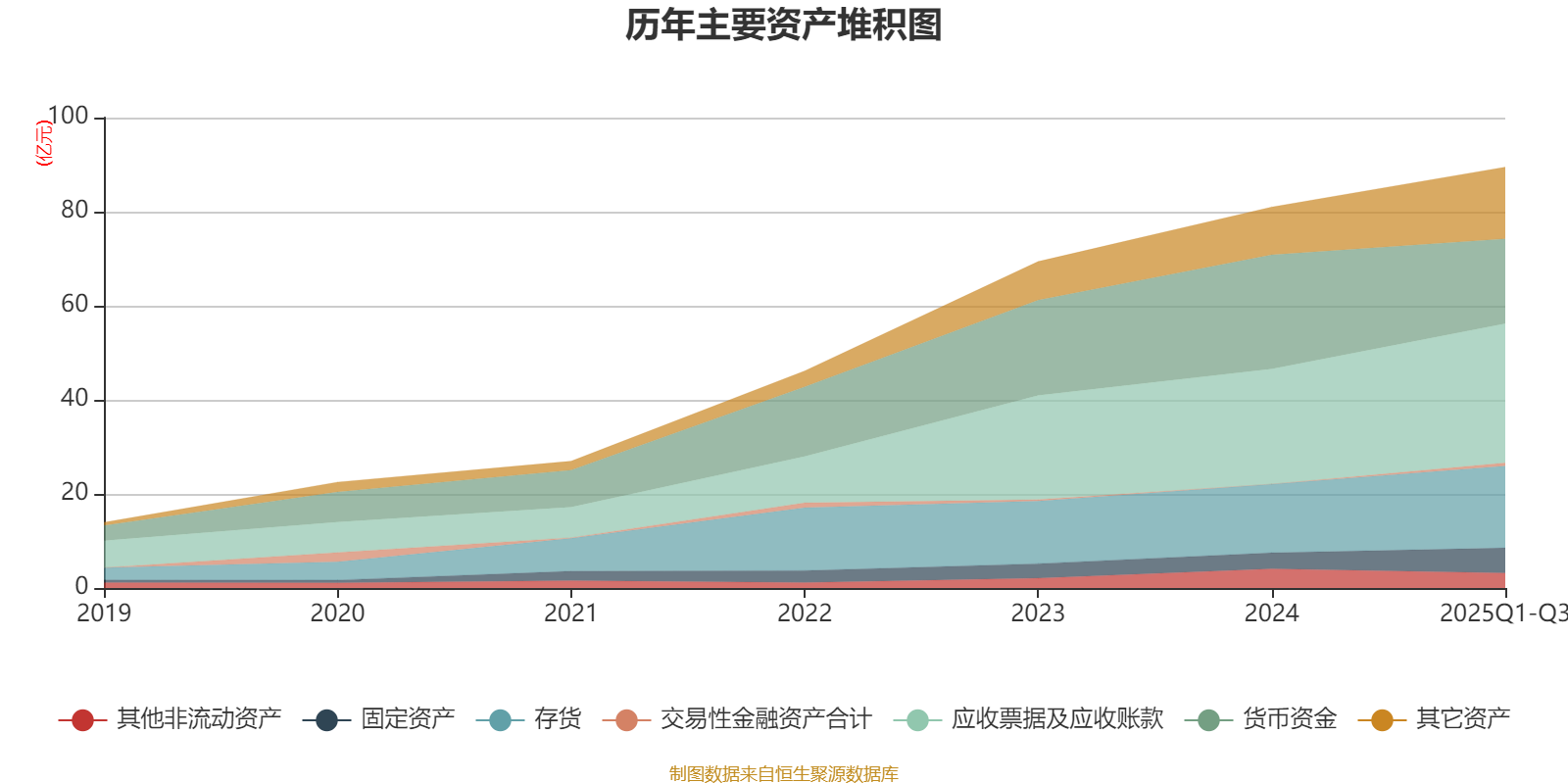 资产重大变化方面,截至2025年三季度末,公司货币资金较上年末减少25.59%,占公司总资产比重下降9.77个百分点;应收票据及应收账款较上年末增加20.89%,占公司总资产比重上升2.85个百分点;固定资产较上年末增加56.24%,占公司总资产比重上升1.74个百分点;使用权资产较上年末增加641.43%,占公司总资产比重上升1.68个百分点。