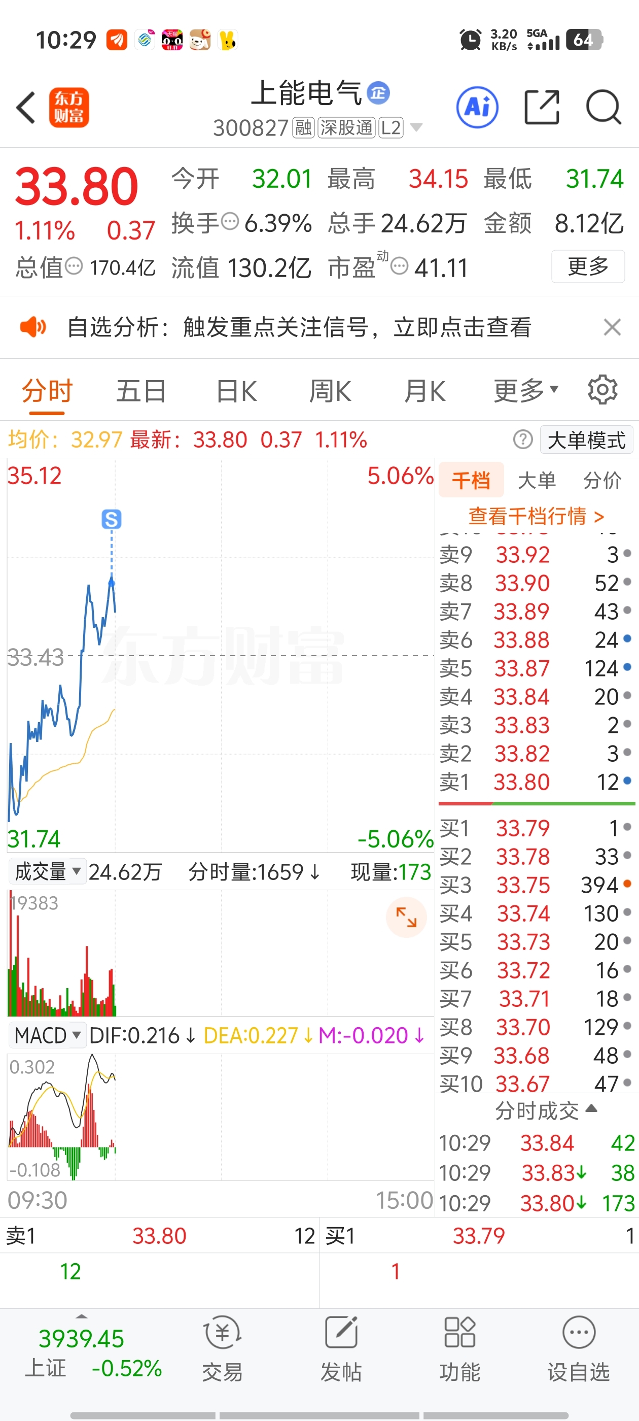 $上能电气(SZ300827)$ 挣个买菜钱,下午看看有没有机会低价接回