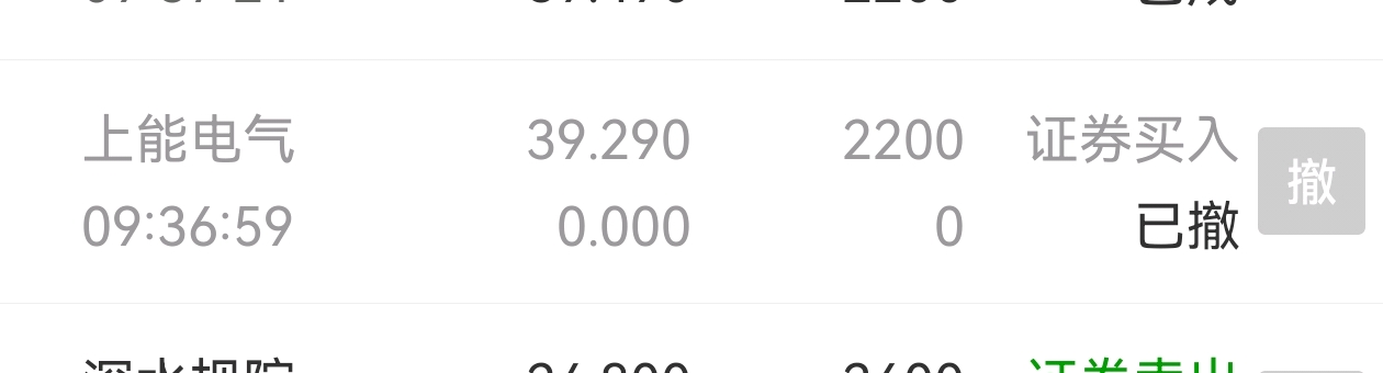 $上能电气(SZ300827)$ 早盘都是神仙打架,挂了价没有成交,就把它撤销了,我这个悔呀,大腿拍肿