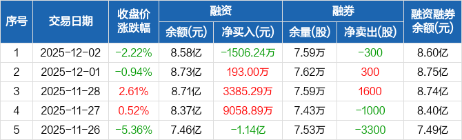 上能电气:融资净偿还1506.24万元,融资余额8.58亿元(12-02)