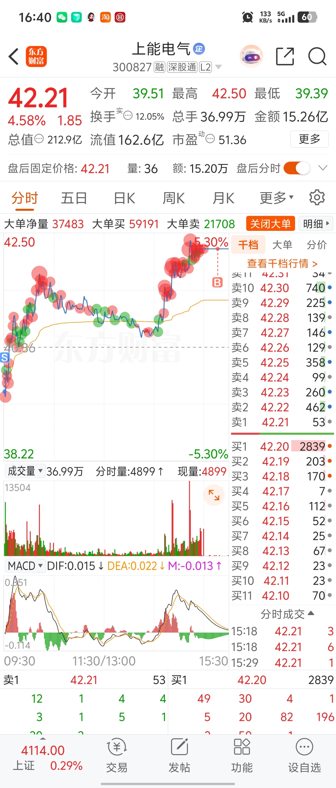 $上能电气(SZ300827)$ 今天的完美sb操作