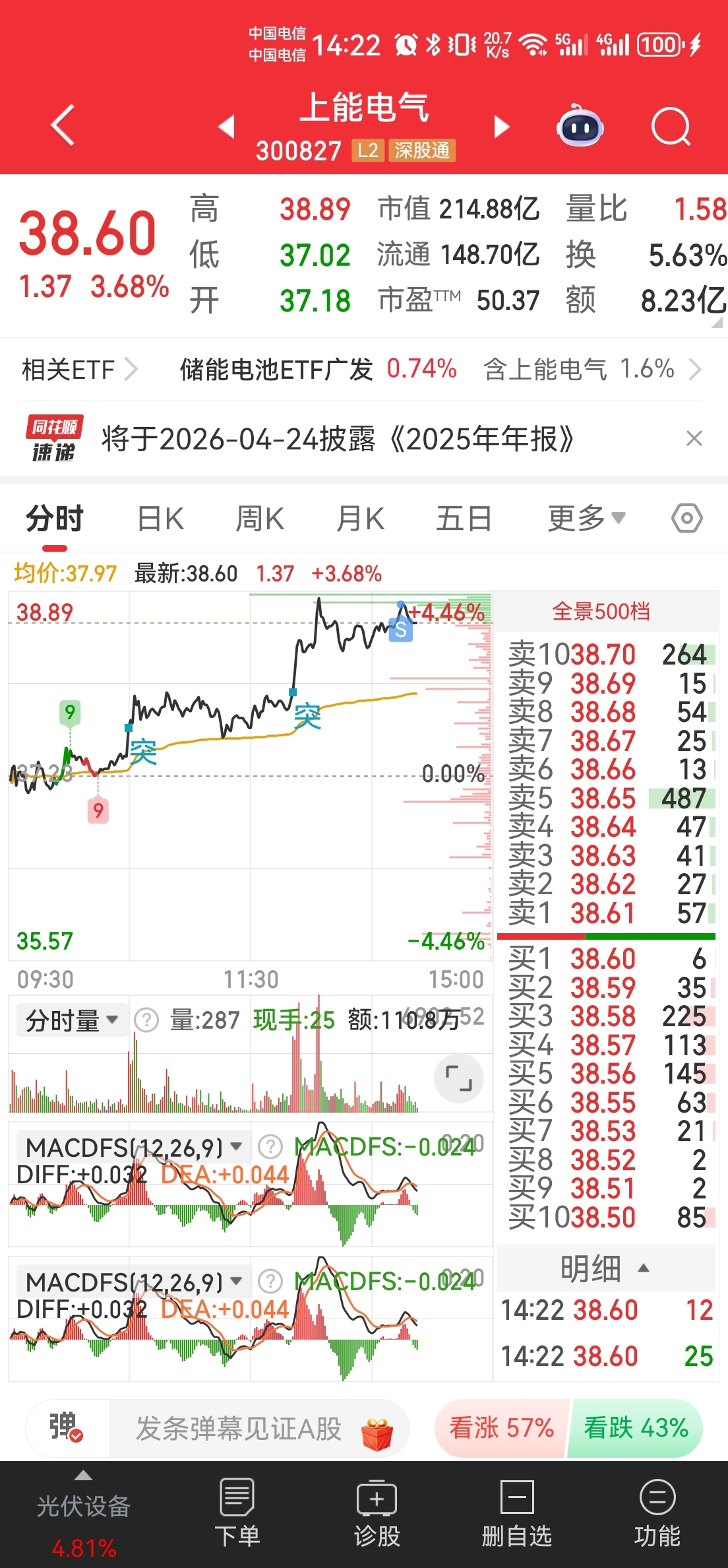 $上能电气(SZ300827)$ 先小赚止盈了,要去救其他股了,雷利,景嘉微都要救