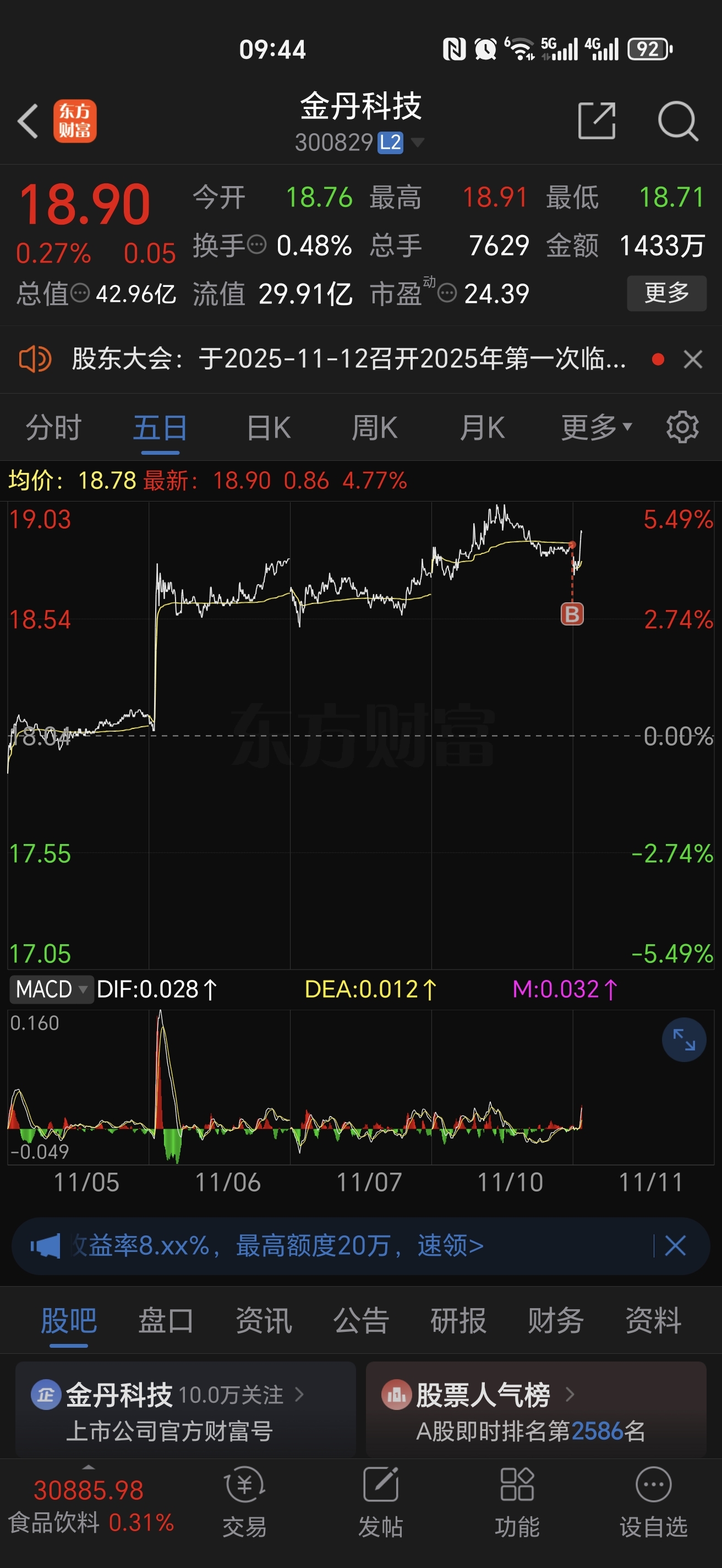 $金丹科技(SZ300829)$ 看着量价关系和形态挺不错,瞎蒙一下。