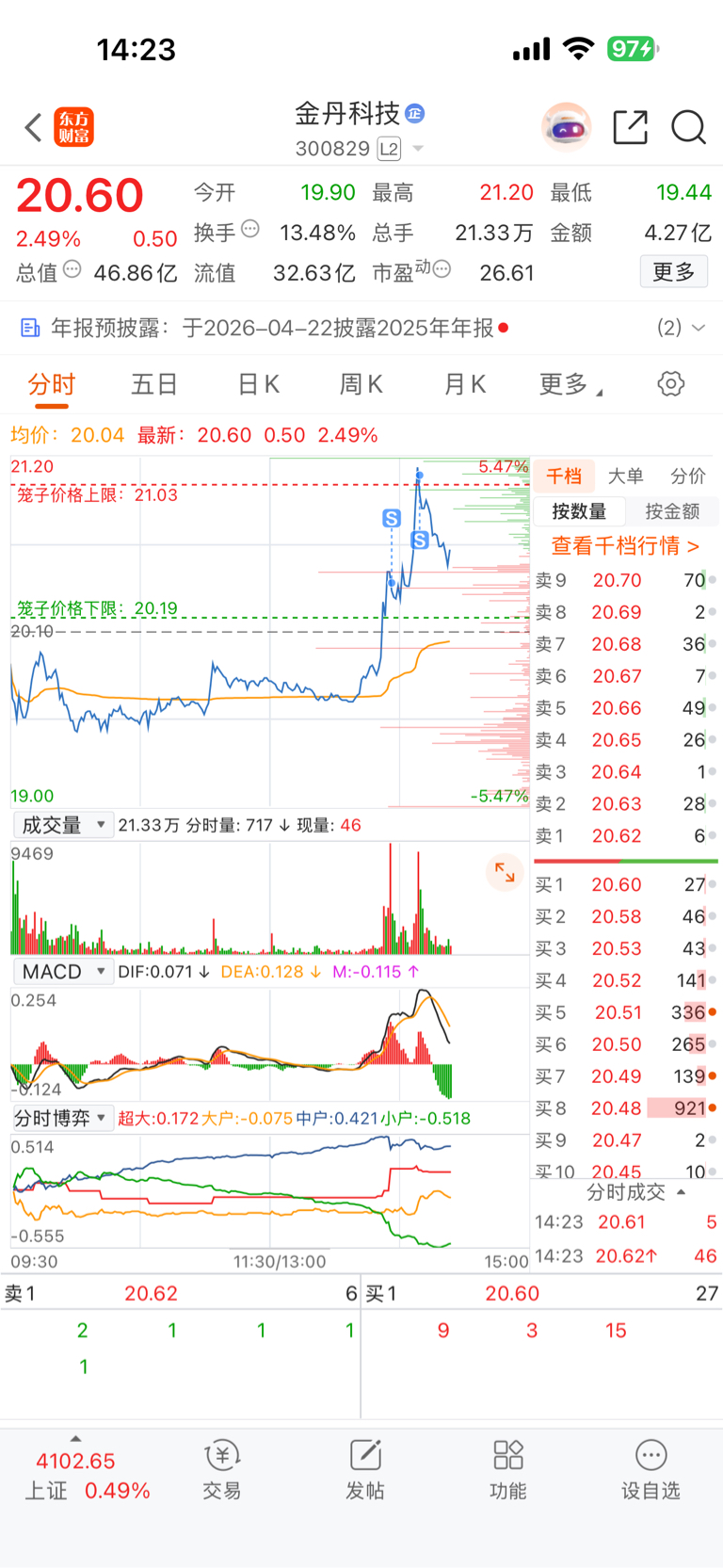 $金丹科技(SZ300829)$ 溜了,留下的发财