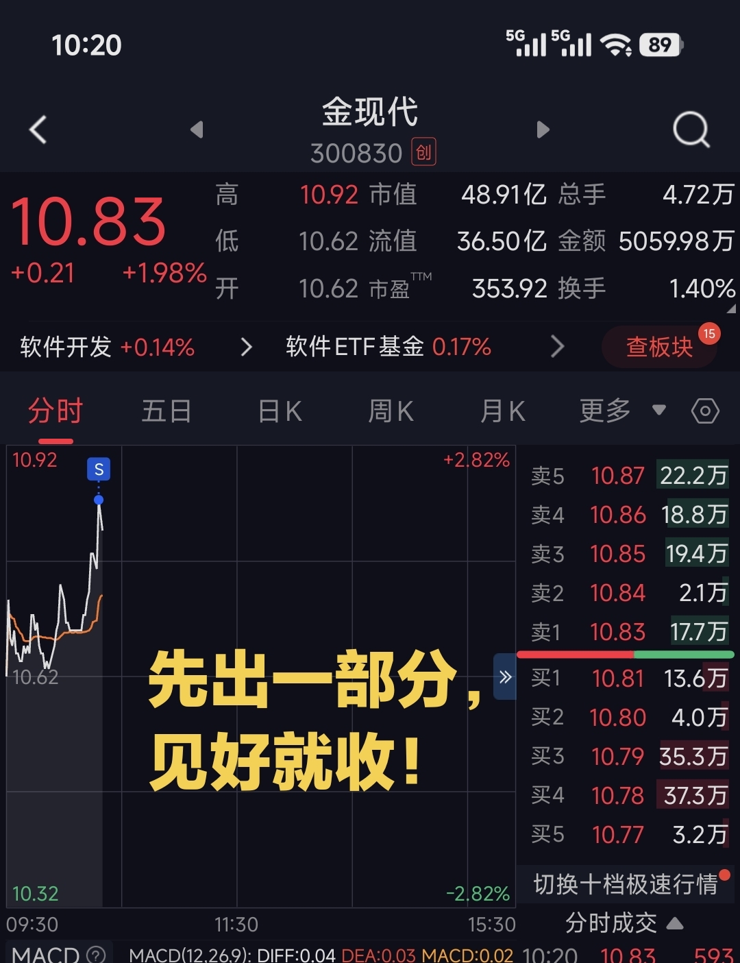 $金现代(SZ300830)$ 先逢高出一部分,见好就收,积少成多!