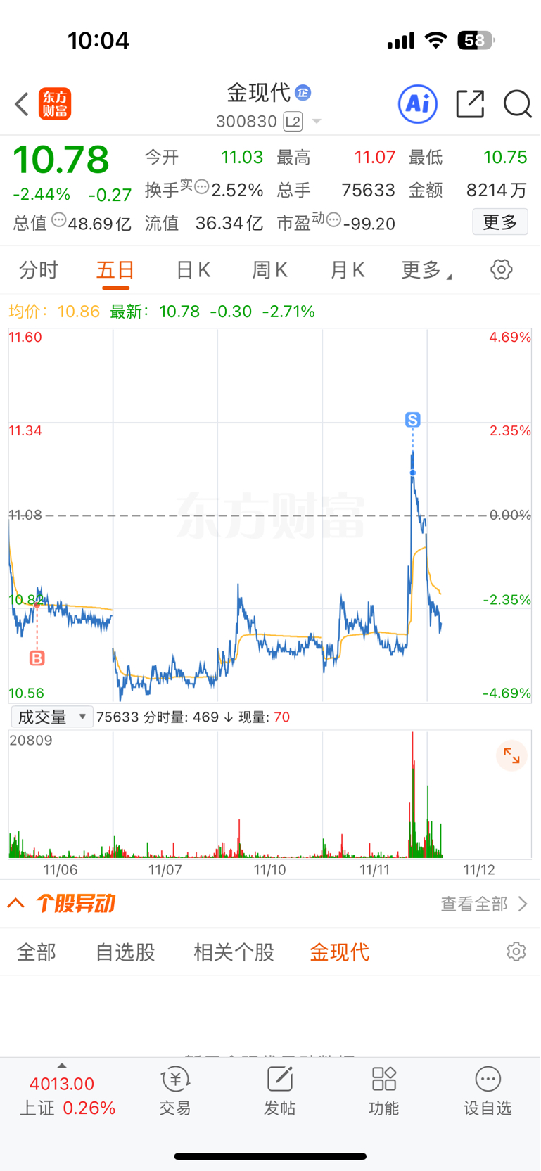 $金现代(SZ300830)$ 再下来点 赶紧来接我