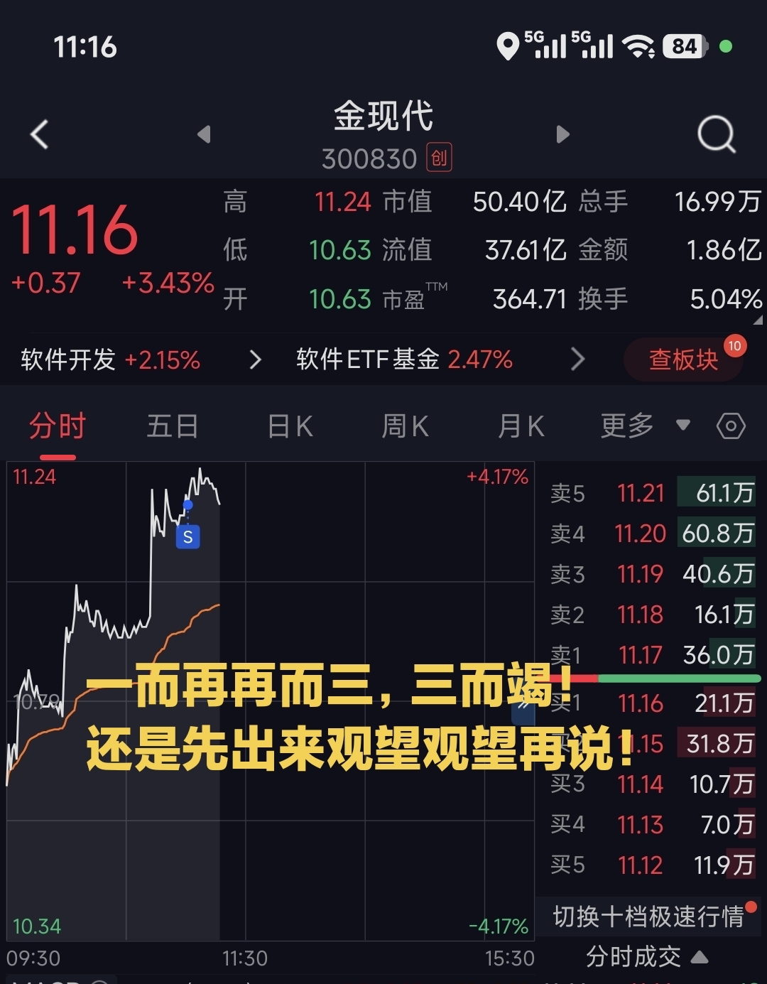 $金现代(SZ300830)$ 一而再再而三,三而竭!还是先出来观望观望再说!