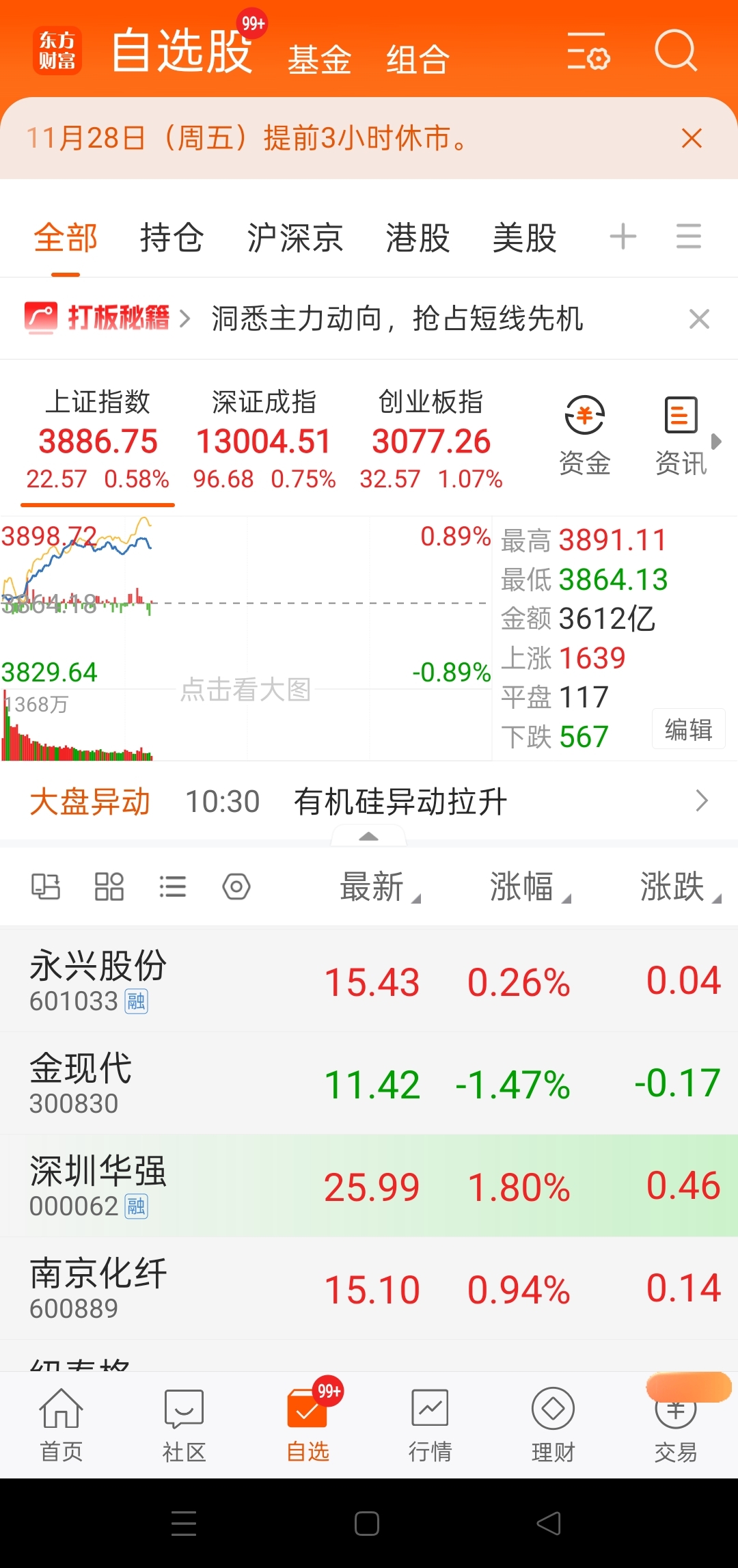 $金现代(SZ300830)$ 在自选股中,就你绿着。