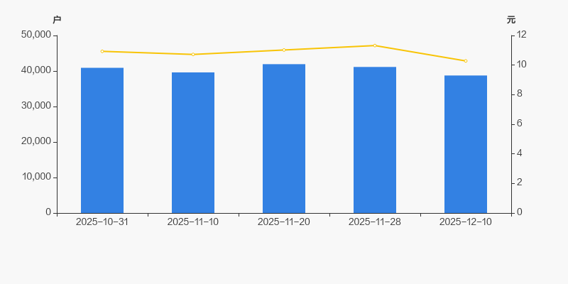 2025年10月31日至今,公司股东户数有所下降,区间跌幅为5.29%。2025年10月31日至2025年12月10日区间股价下降5.95%。