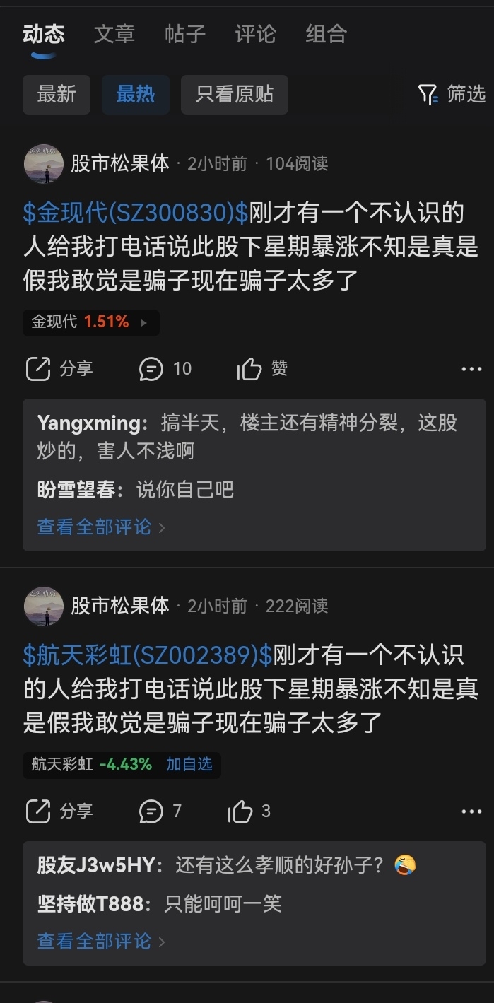 $金现代(SZ300830)$ 这货不是托就是为了吸粉丝,一句话同样的话,能发十几个股吧,真是杂毛