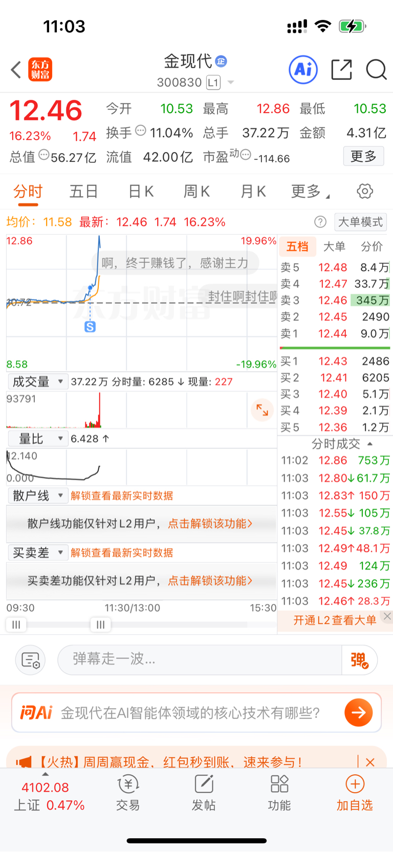 $金现代(SZ300830)$ 哭晕了,11.2清仓就涨,想死的心都有