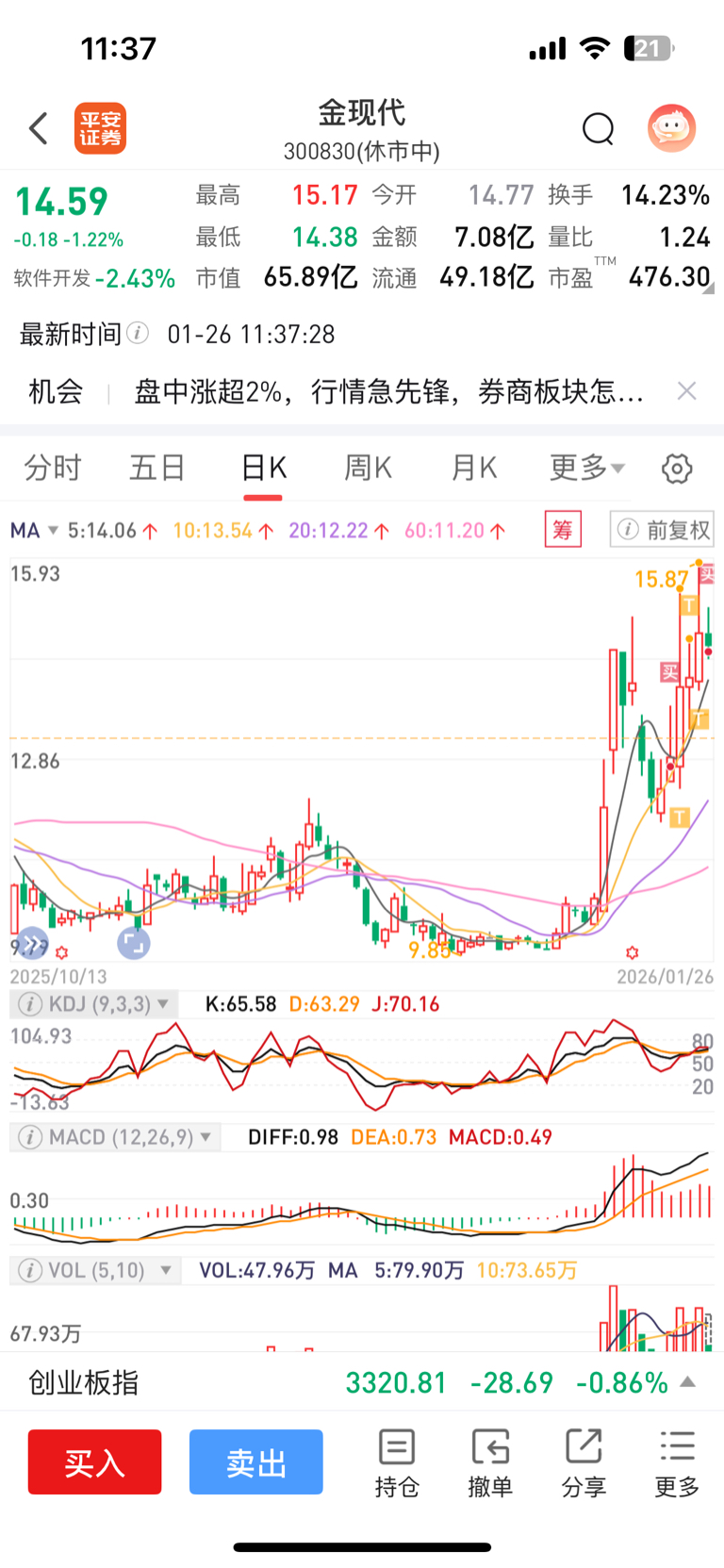 $金现代(SZ300830)$ 给你们吃个定心丸,慌锤子,加仓了