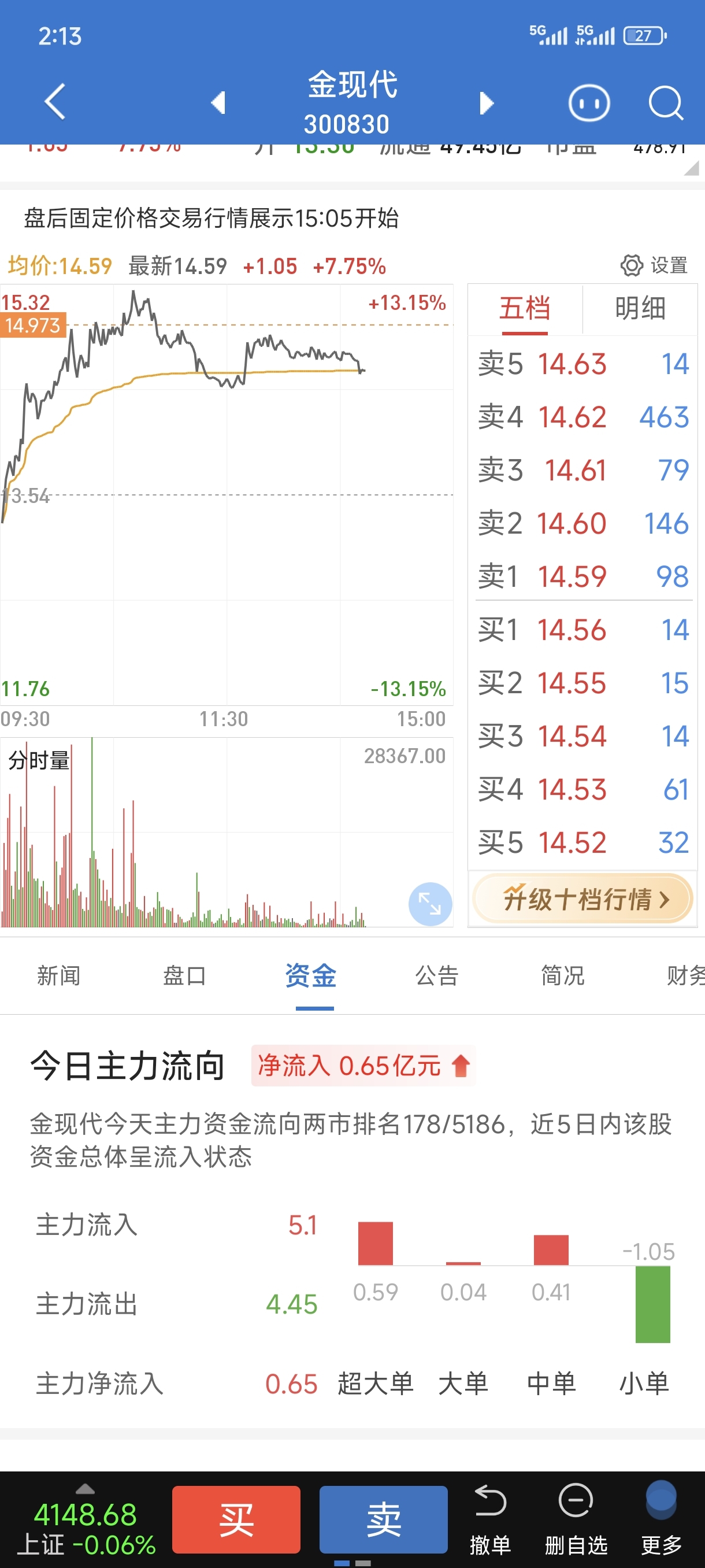 $金现代(SZ300830)$ 金现代尾盘会创今天新高吗?
