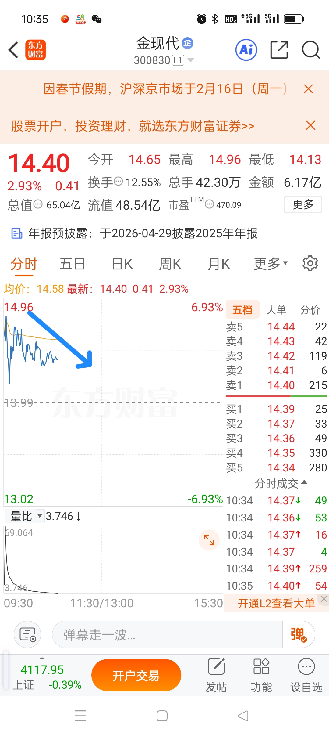 $金现代(SZ300830)$ 今天没啥好结果