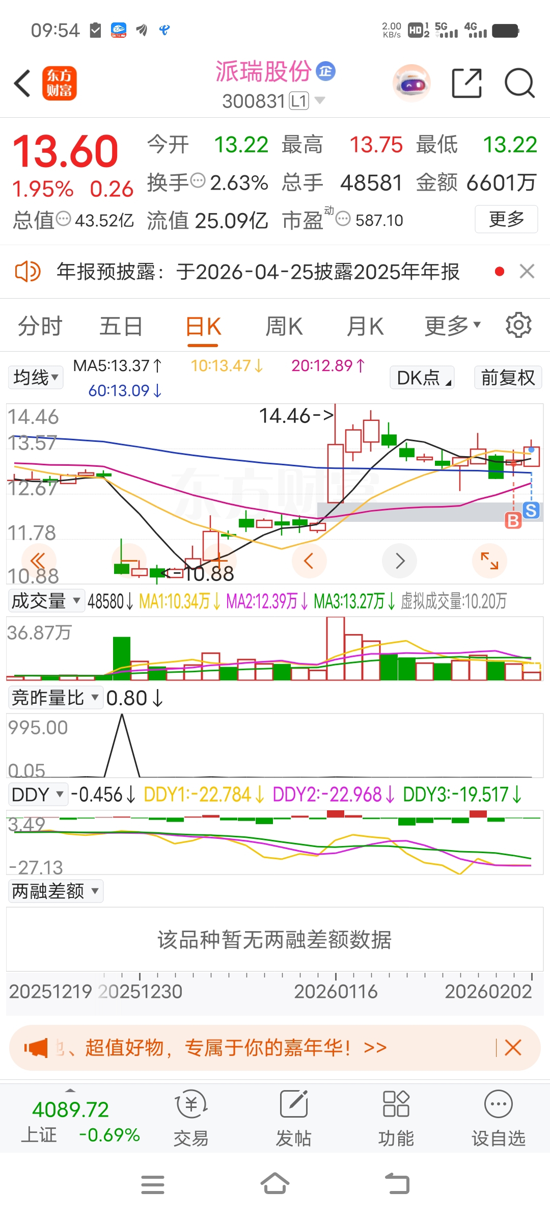 $派瑞股份(SZ300831)$ 上一交易日日线小时线共振,单阳不破买入,今天止盈