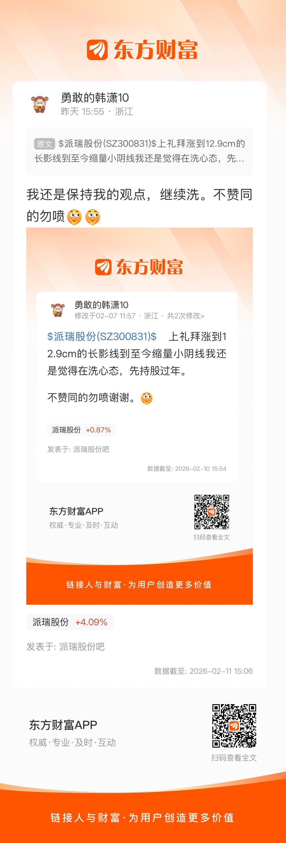 温馨提示: 1.根据《证券法》规定,禁止编造、传播虚假信息或者误导性信息,扰乱证券市场;2.用户在本社区发表的所有资料、言论等仅代表个人观点,与本网站立场无关,不对您构成任何投资建议。用户应基于自己的独立判断,自行决定证券投资并承担相应风险。《东方财富社区管理规定》