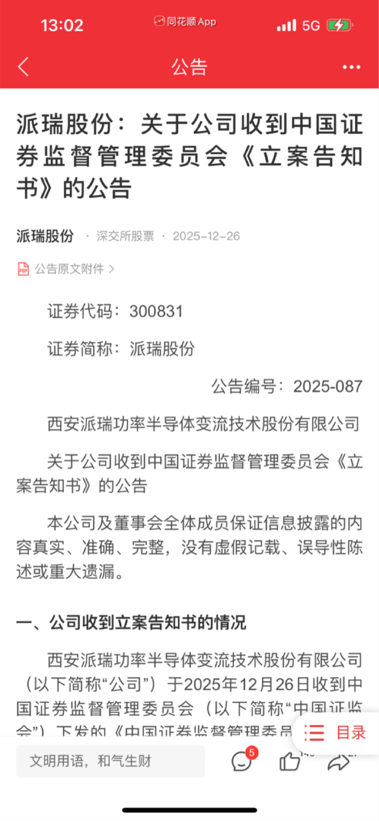 $派瑞股份(SZ300831)$ 这个立案解决了吗?没有的话就是一个隐患