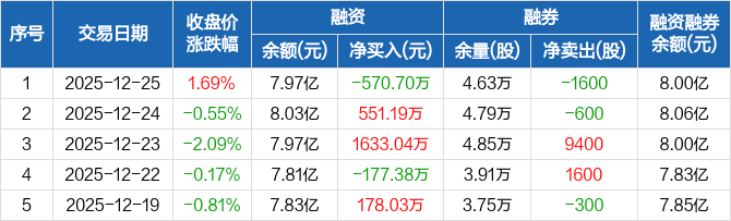 新产业:融资净偿还570.7万元,融资余额7.97亿元(12-25)