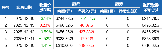 星辉环材:融资净偿还251.54万元,融资余额6244.78万元(12-16)