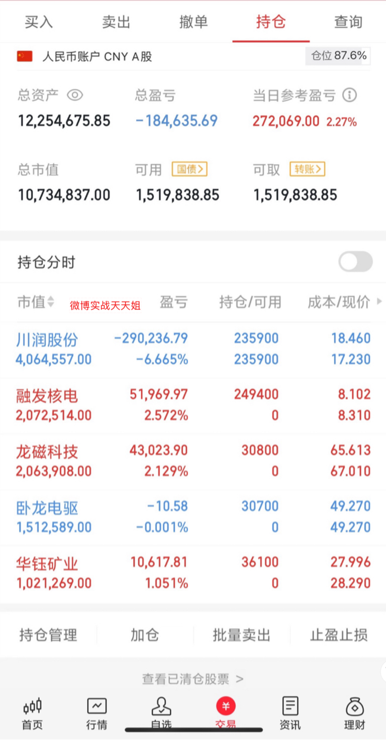 天天姐早盘记录今天开仓了,涨停板恭喜跟上的粉丝朋友小肉。今天还有开仓了有色板块的