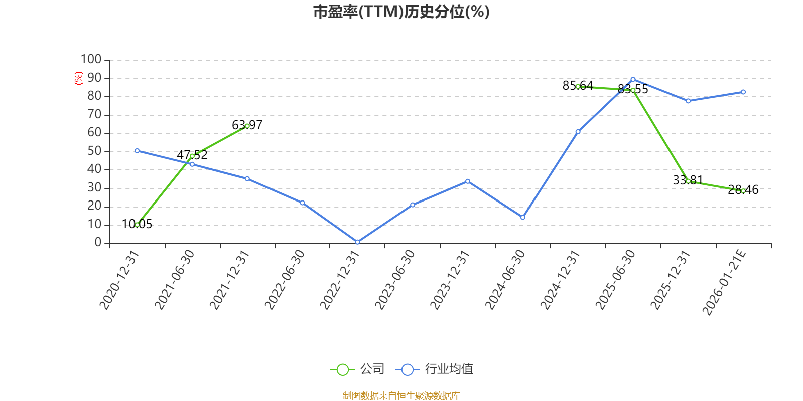 市盈率、市净率为负时,不显示当期分位数,会导致折线图中断。