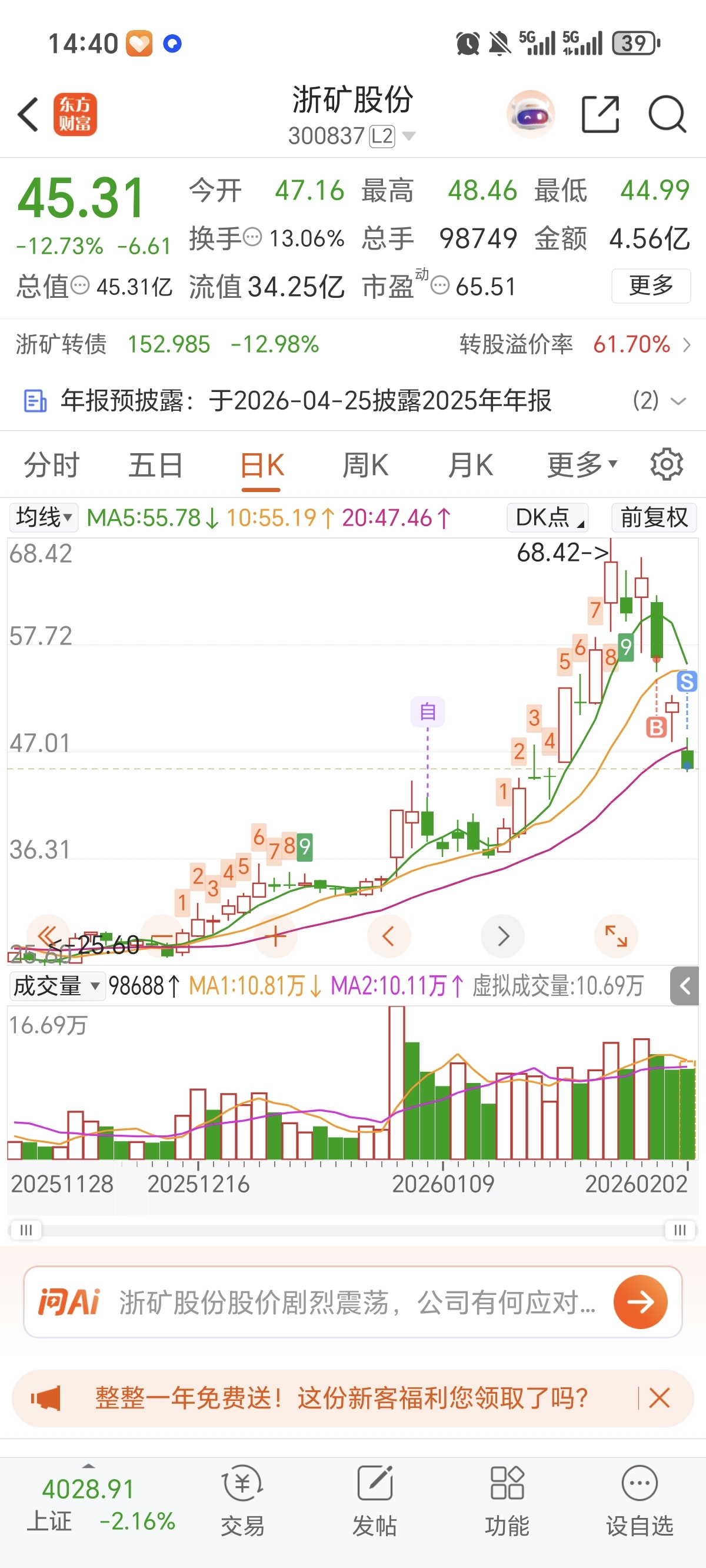 $浙矿股份(SZ300837)$ 抄底进入,持有两天亏20个点割了
