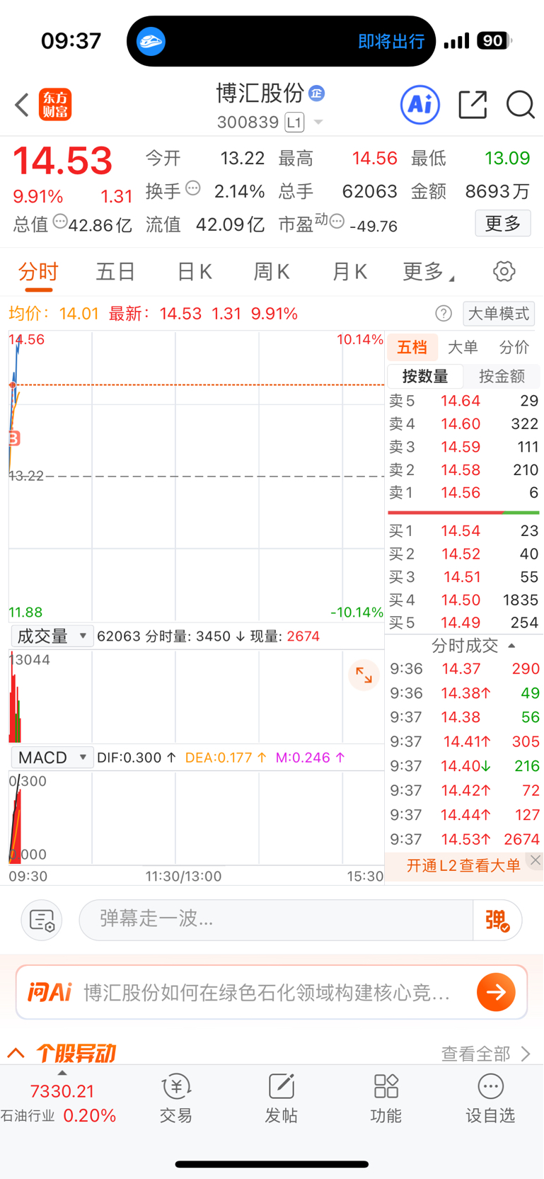 $博汇股份(SZ300839)$ 进来了,勇猛无敌。今天别玩阴的啊大哥