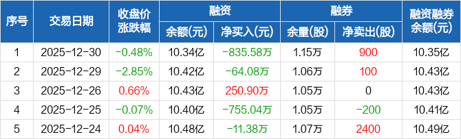 康华生物:融资净偿还835.58万元,融资余额10.34亿元(12-30)