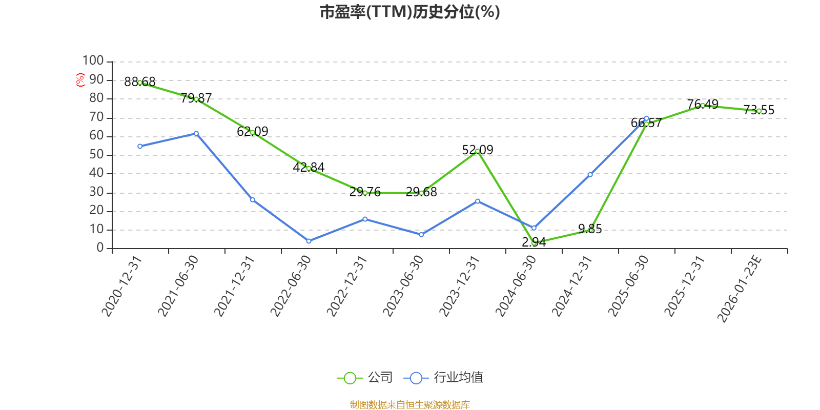 以本次披露业绩预告均值计算,公司近年市盈率(TTM)图如下所示: