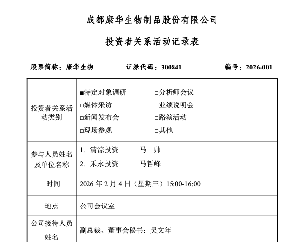 近日,成都康华生物制品股份有限公司(以下简称“康华生物”)披露投资者关系活动记录,就收购上海纳美信生物医药有限公司、核心产品研发进展及管理层变动等事项回应市场关切。