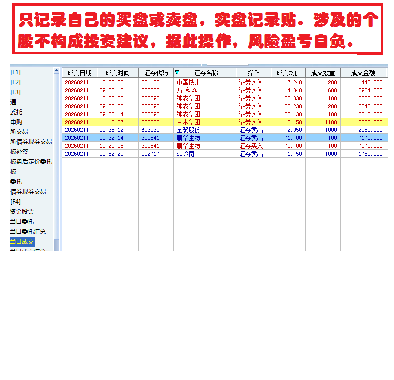 2026-2-11【70.7下盈利分批买卖做下差价,本金安全第一】