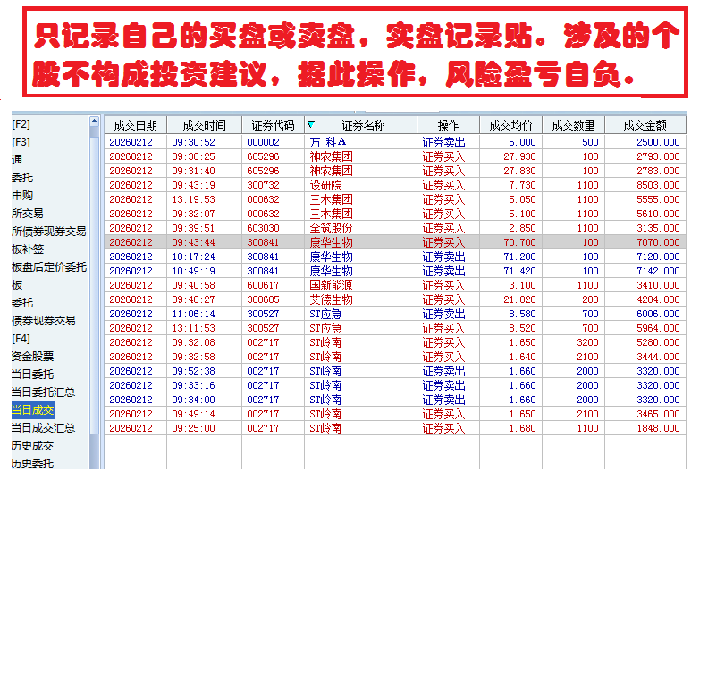 2026-2-12【70.7下盈利分批买卖做下差价,本金安全第一】
