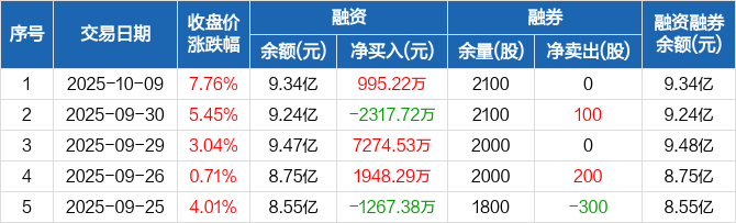 帝科股份:融资净买入995.22万元,融资余额9.34亿元(10-09)