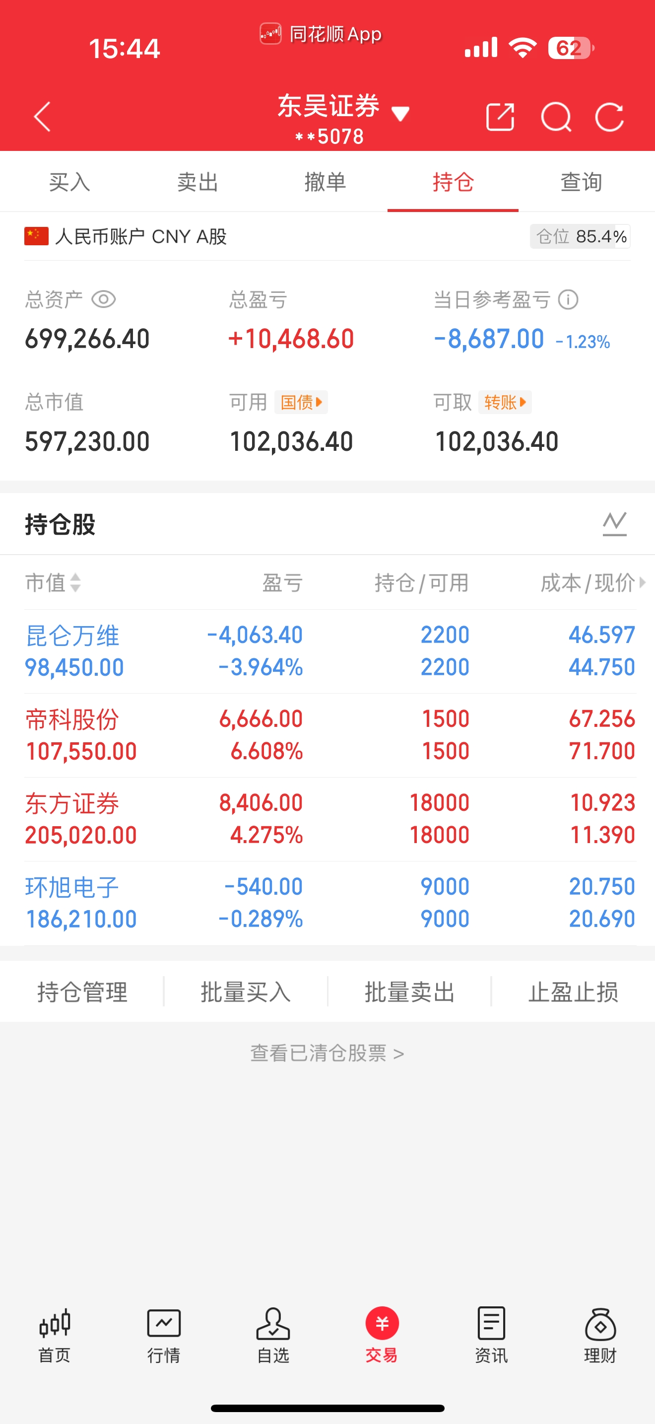 实盘操作#复盘记录# 今日指数大幅低开 午盘震荡回升,中美贸易紧张关系升级是导致早盘大幅低开的主要原因,盘中逐步回升,跌幅收窄。显示出一定韧性和承接力量。 $环旭电子(SH601231)$ $帝科股份(SZ300842)$ $东方证券(SH600958)$ 持有不动