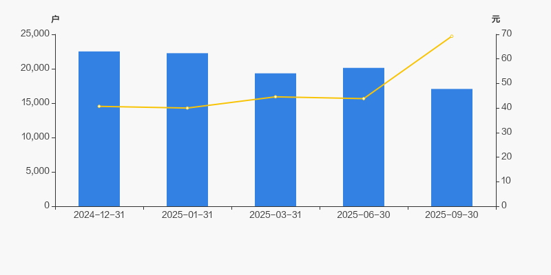 2024年12月31日至今,公司股东户数显著下降,区间跌幅为24.23%。2024年12月31日至2025年9月30日区间股价上涨70.21%。