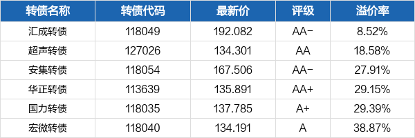 当前胜蓝转02溢价率 = 100% *(债券面值 / 转股价值 - 1) = 100% *(100 / 101.43 - 1) = -1.41%。结合行业、评级等因素后筛选出如下相似转债: