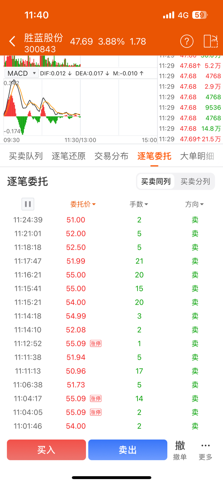 $胜蓝股份(SZ300843)$ 挂单51.99,21手随缘出