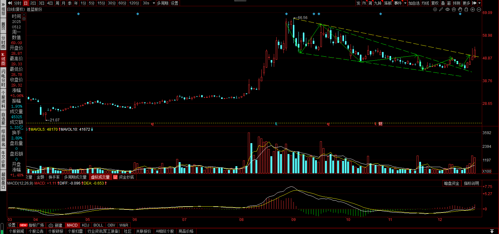 仙人指路,后市可期:胜蓝股份。