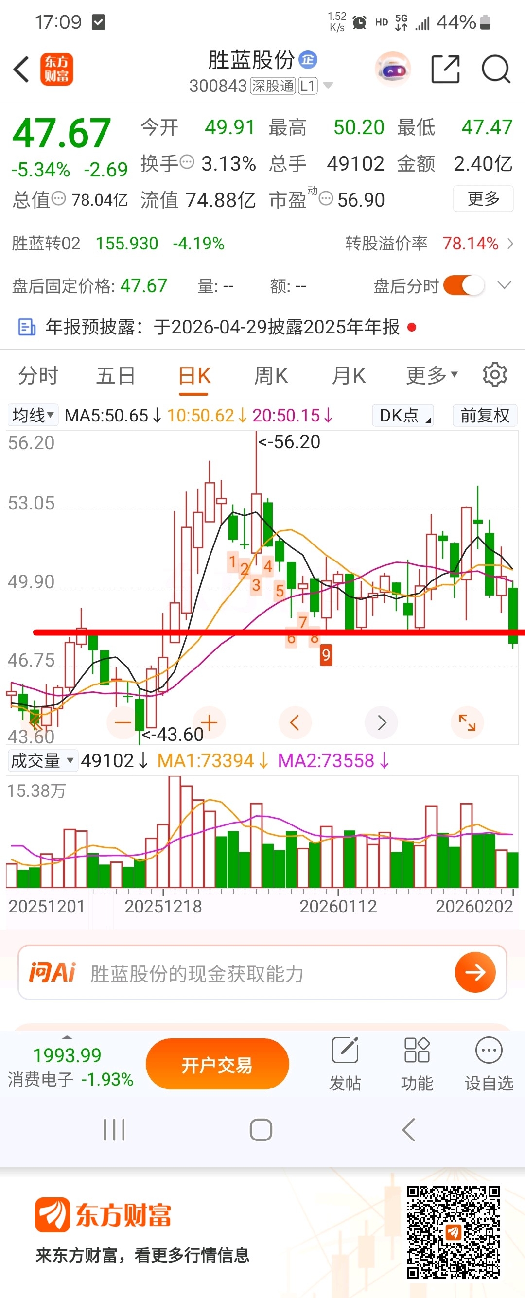$胜蓝股份(SZ300843)$ 跌破支撑,股价五日线下,下跌趋势形成。年底了,很多企业需要结算资金给员工,供应商货款,资金大量出逃回笼。哎~