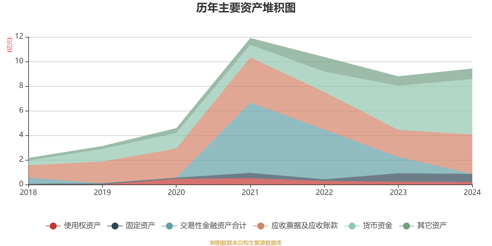 资产重大变化方面,截至2024年末,公司交易性金融资产合计较上年末减少100%,占公司总资产比重下降15.07个百分点;应收票据及应收账款较上年末增加45.41%,占公司总资产比重上升8.92个百分点;货币资金较上年末增加25.32%,占公司总资产比重上升6.91个百分点;商誉占公司总资产的1.18%,上年末为0。