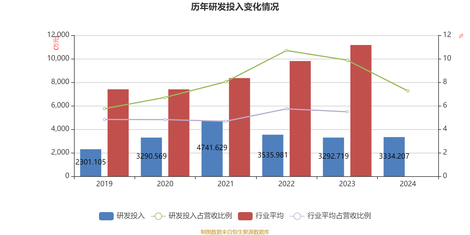 2024年全年,公司研发投入金额为3334.21万元,同比增长1.26%;研发投入占营业收入比例为7.26%,相比上年同期下降2.62个百分点。此外,公司全年研发投入资本化率为0%。